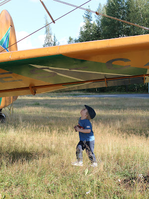 Olinpa lähdössä iltavuoroon ja pikku-ukko leikki pihalla hyvin keskittyneesti.